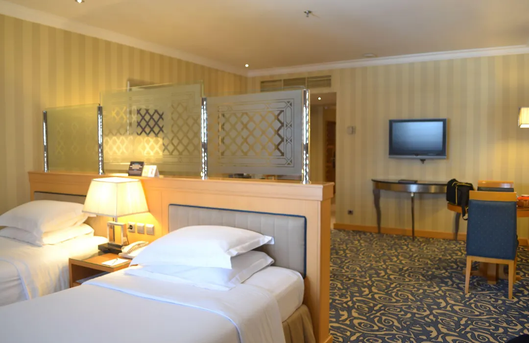 The hotel is big size and clean with an excellent restaurant, I had a very good stay. The room was huge on the upper floors and the staff was cooperative. Its location minute walk from Souk al Khalil was ideal.